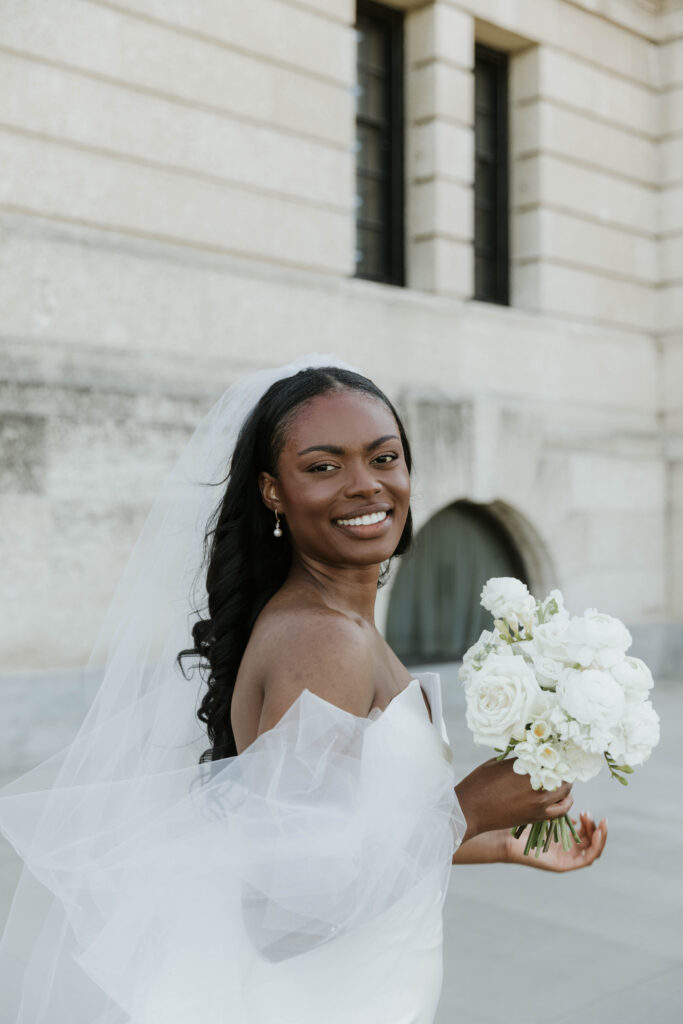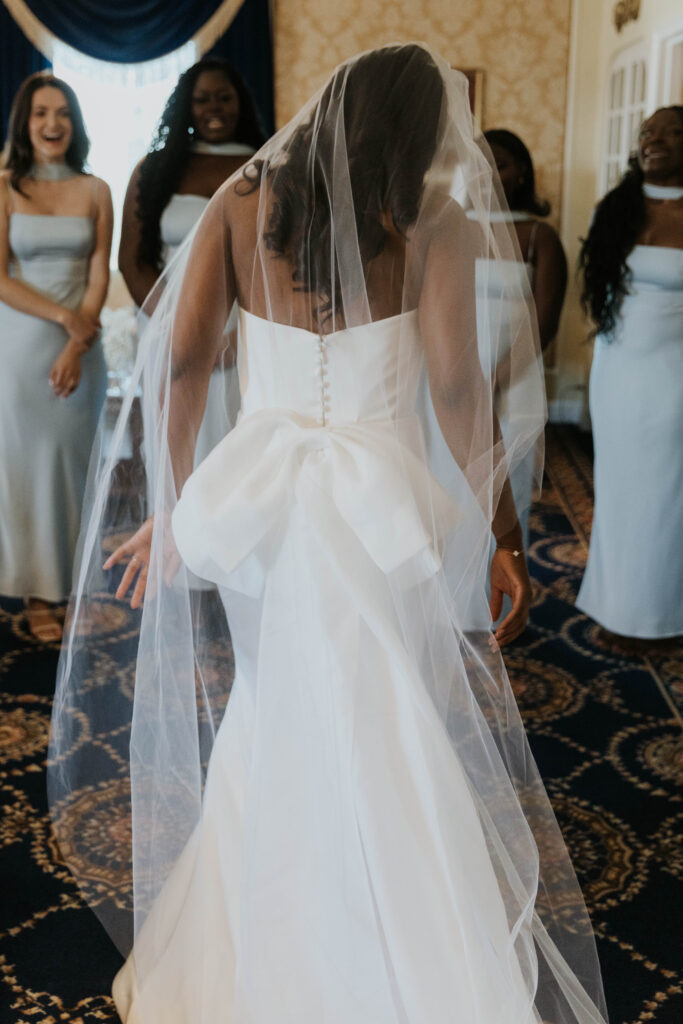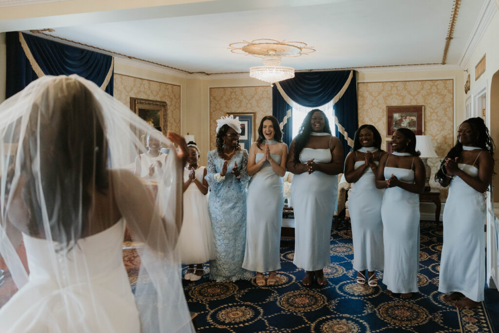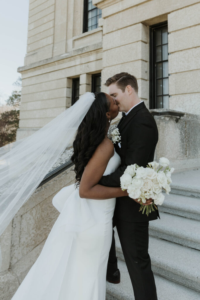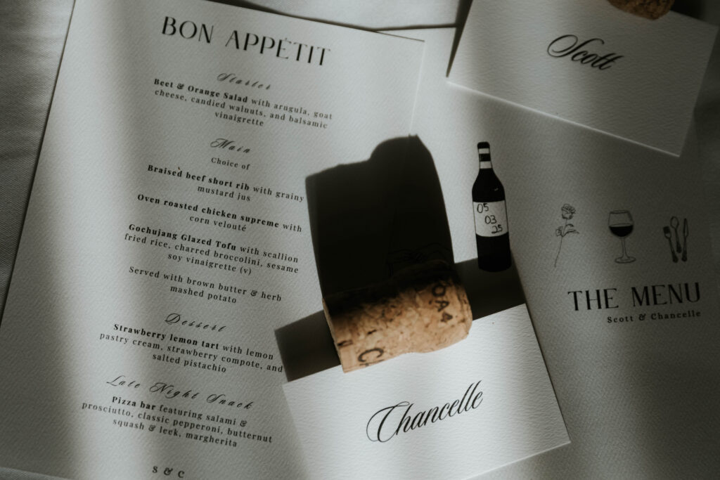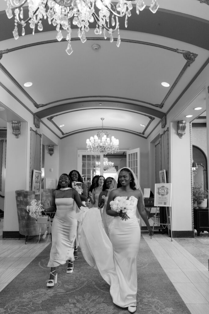 Following their ceremony, guests were welcome back later in the afternoon for cocktail hour and the reception. The couple headed out with their bridal party and the every lovely Brooklyn Caroline Photography on a Peekaboo limo for photos while the Wish team began flipping the Regency Ballroom for their reception. We had just 2 hours to transform the space for nearly 200 guests moving chairs, loading in tables, centrepieces, decor, and all the personalized touches that Chancelle & Scott were dreaming of. With time to spare, we nailed their vision. Every name card in place, every favour placed with care, and each centrepiece styled to perfection.