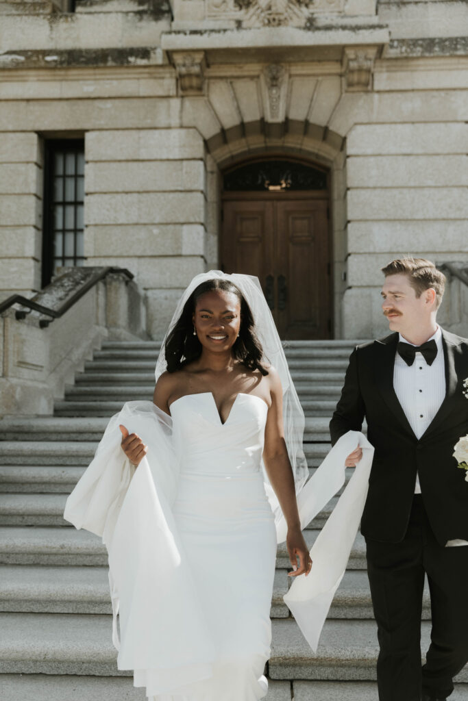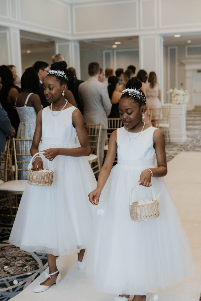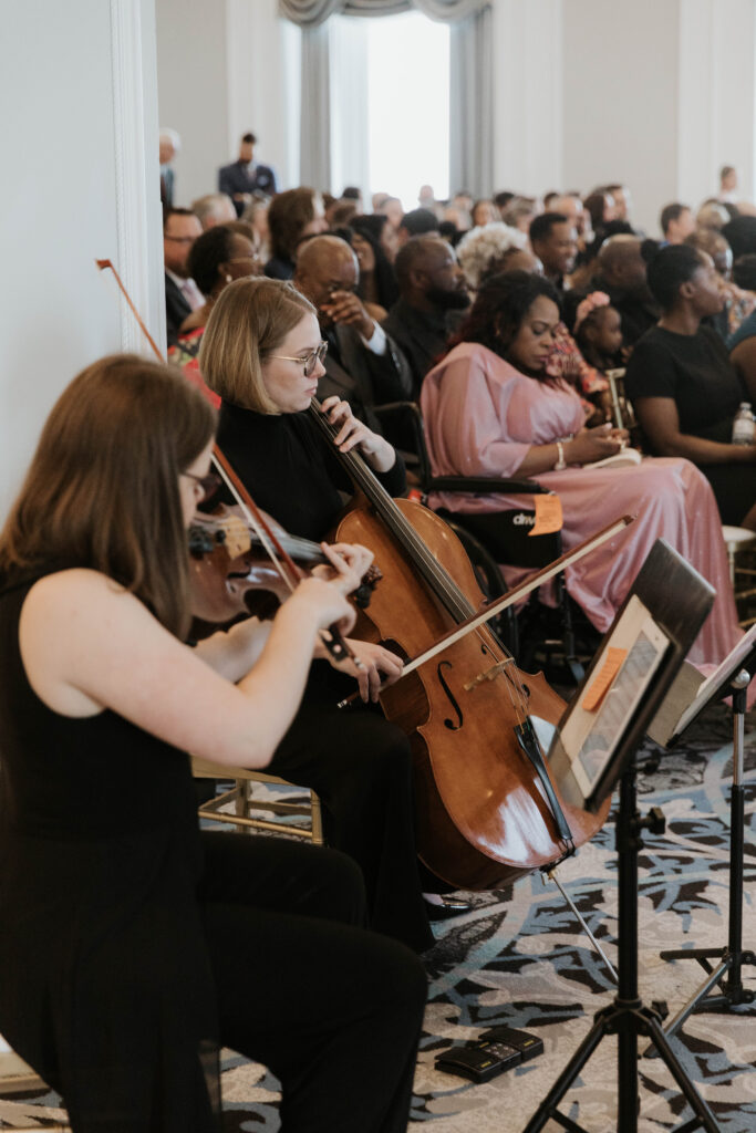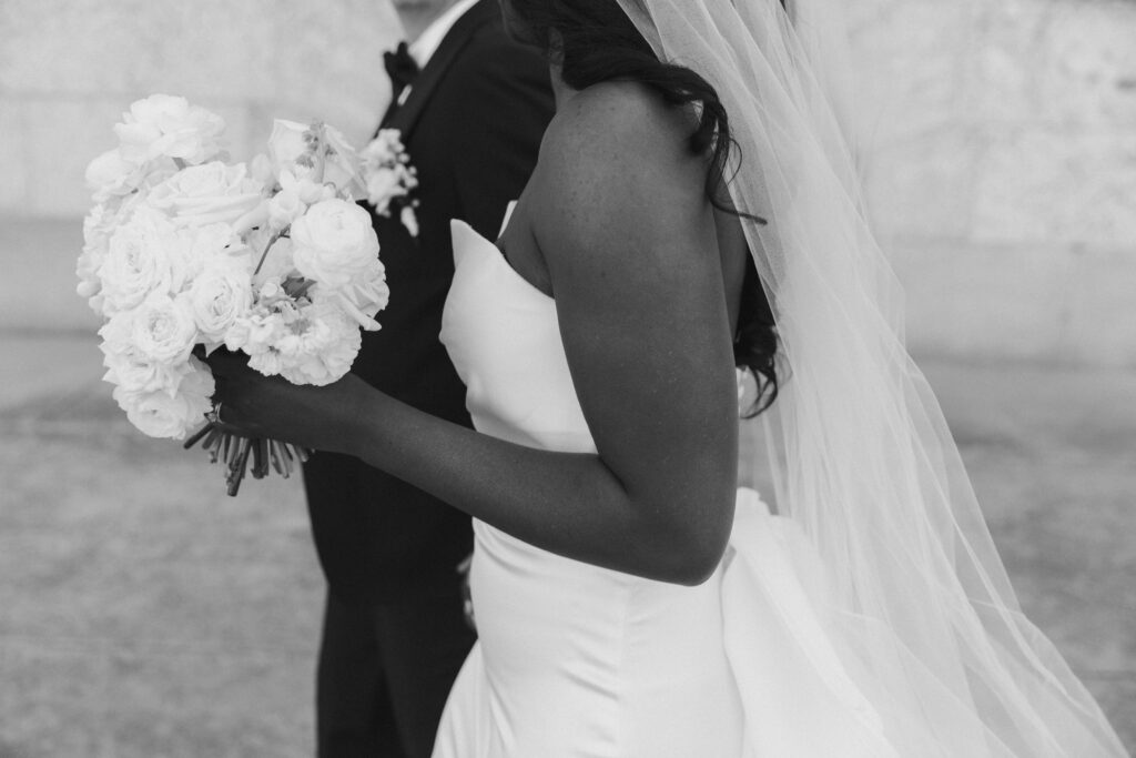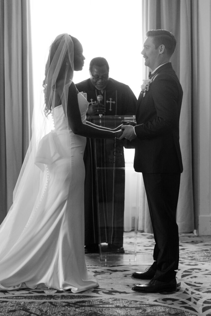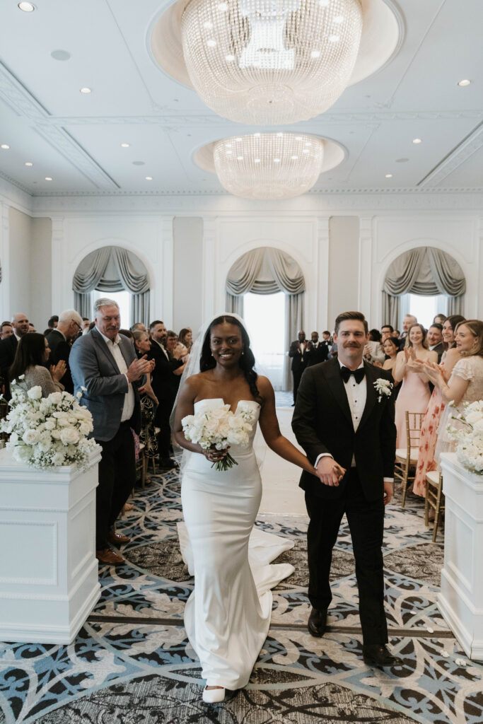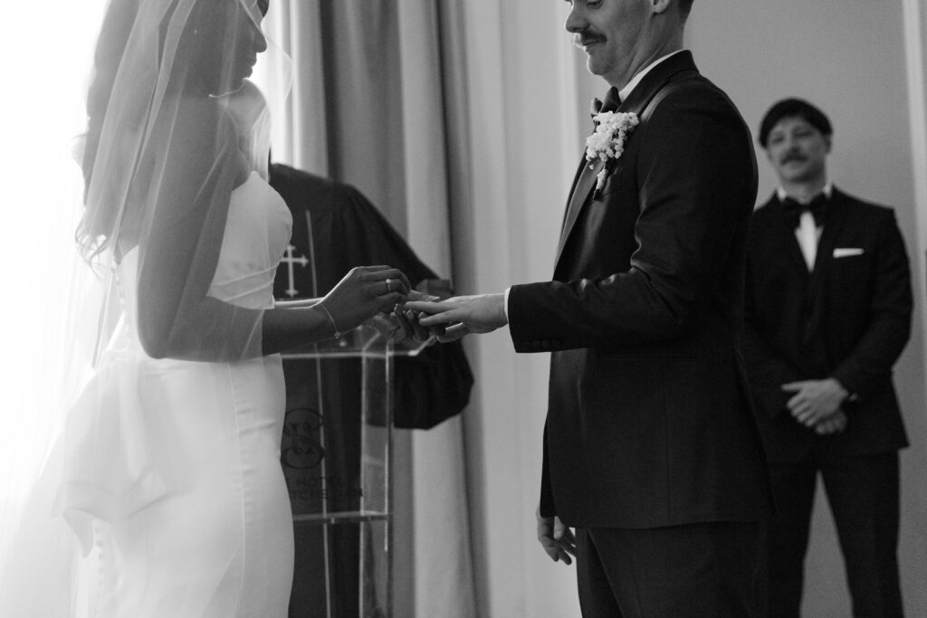 As guests arrived in the Regency Ballroom, they were welcomed in by The Listesto Trio – a string quartet covering a number of the couples favourite songs. It was the perfect way to set the tone and vibe for their black tie affair! The room was tastefully decorated with gold chivari chairs and stunning white rose florals designed by Eva Joy Designs with the crystal chandeliers on full display. Chancelle walked down the aisle toward Scott with her dad to a rendition of ‘No One’ by Alicia Keys; a moment we had carefully planned together that was more perfect than we ever could have dreamed.
