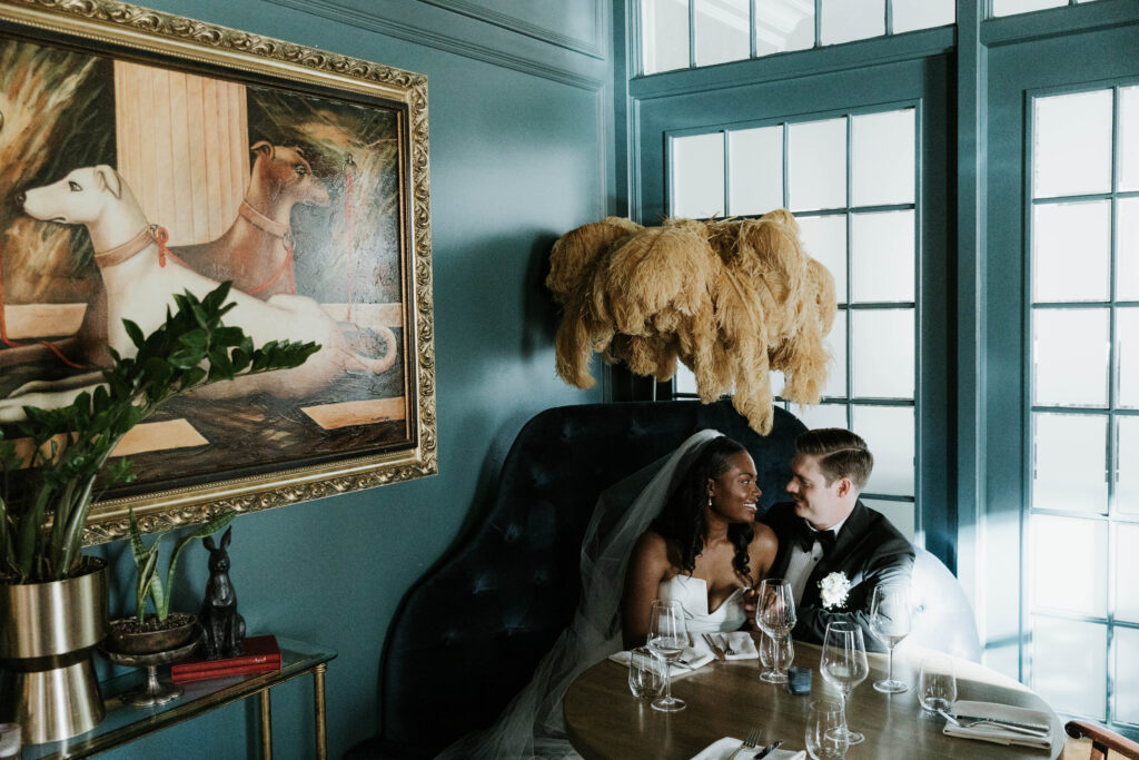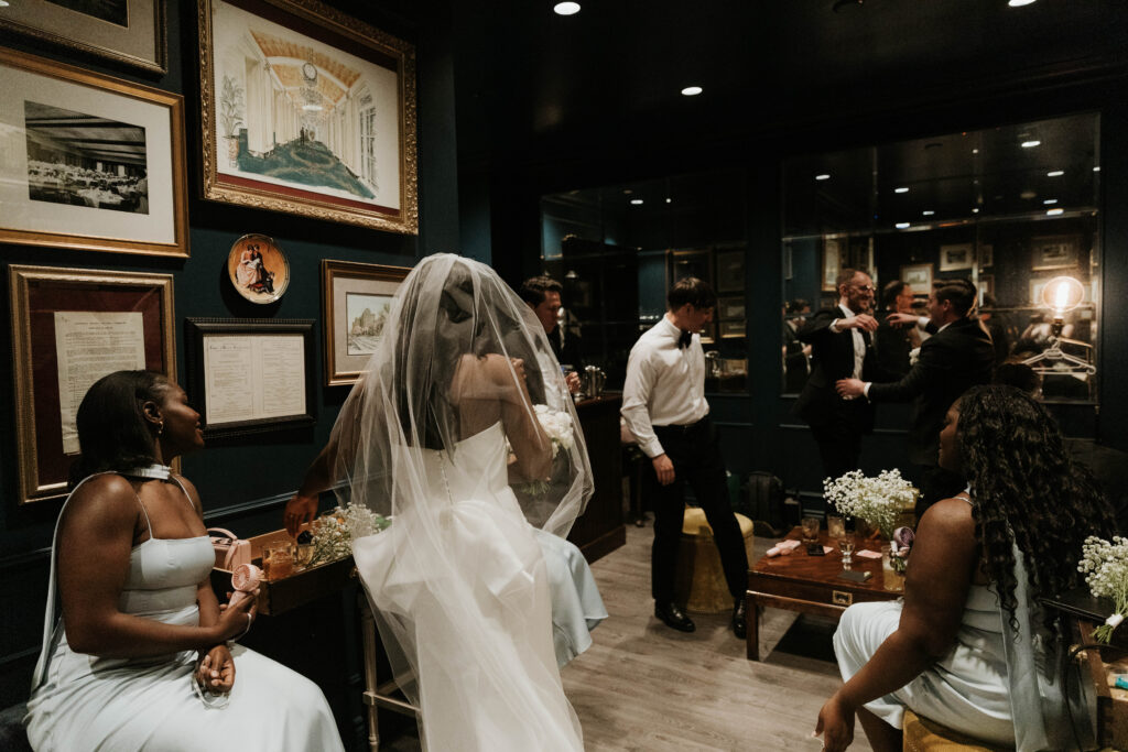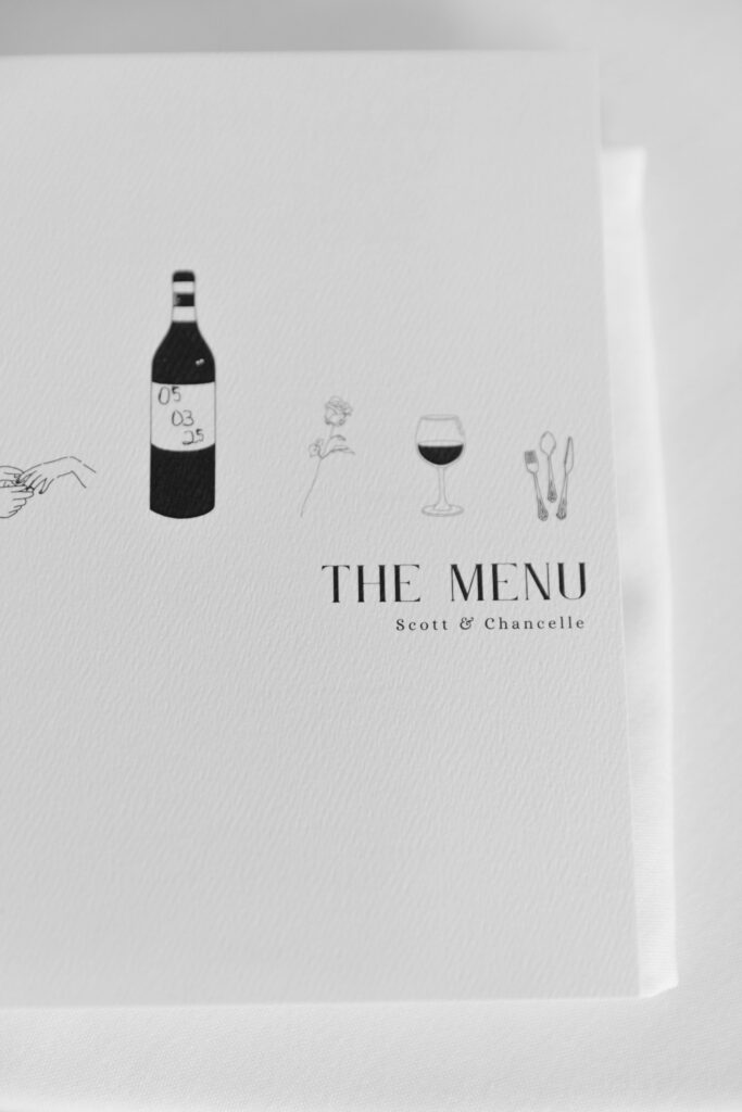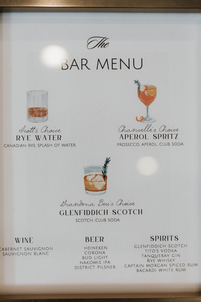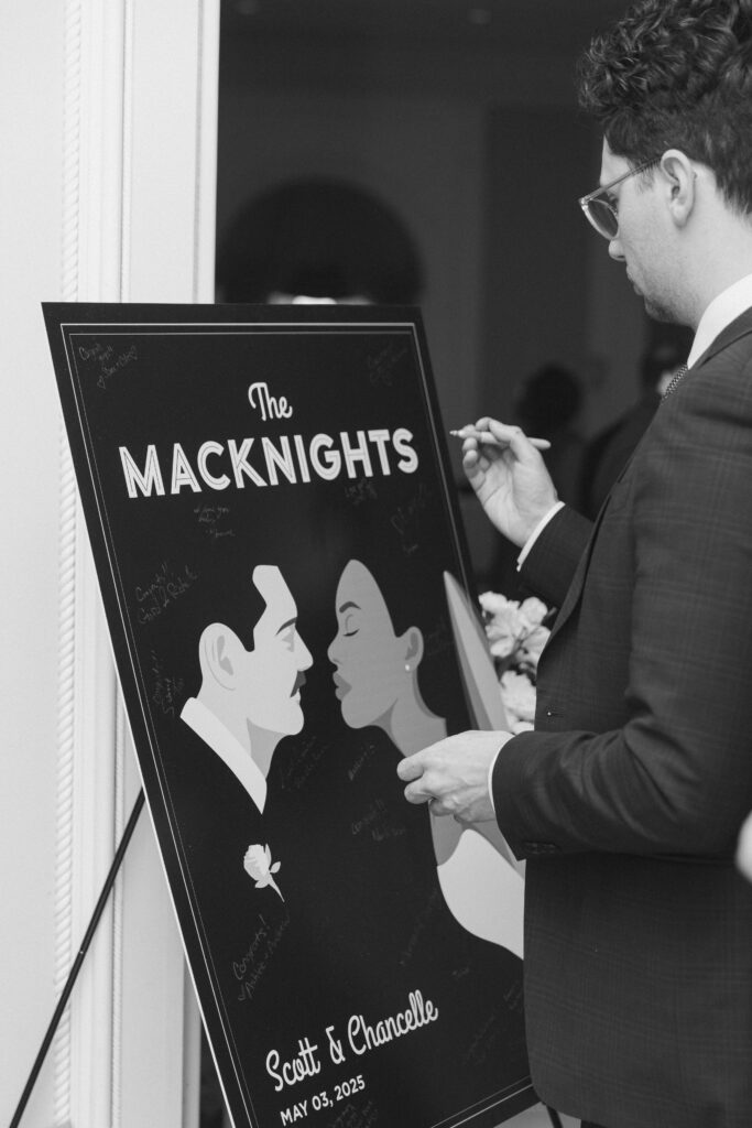 Cocktail hour began with Chancelle & Scott mingling with their guests as everyone enjoyed passed appetizers and an epic signature cocktail menu with the Listeso Group playing in the background. Their guestbook was a movie poster featuring cartoon versions of the couple. It was so unique, and complimented the style of their wedding just right.